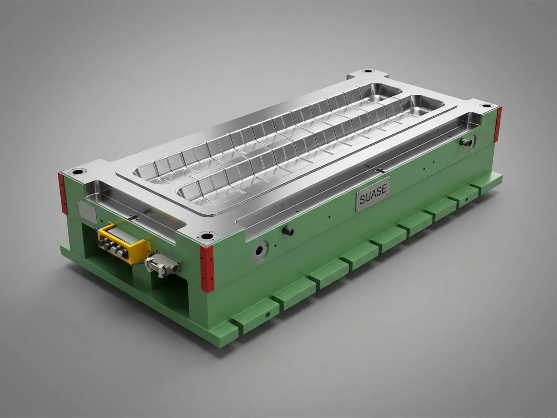 Large-scale PCM compression mould for Long Covers. Engineered by SUASE MOULD for the building industry, ensuring precise dimensions and robust performance for heavy-duty applications.